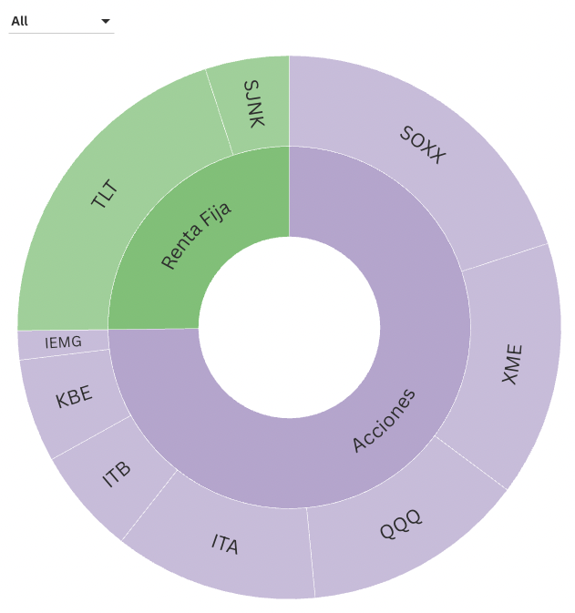 El portafolio de riesgo 8/10 de Insights incorpora activos diversificados como SOXX, TLT, IEMG (mercados emergentes), SJNK (bonos de alto rendimiento a corto plazo) y XME (mineras y metales). Estas posiciones han permitido minimizar las caídas en 2025 en comparación con el S&P500.