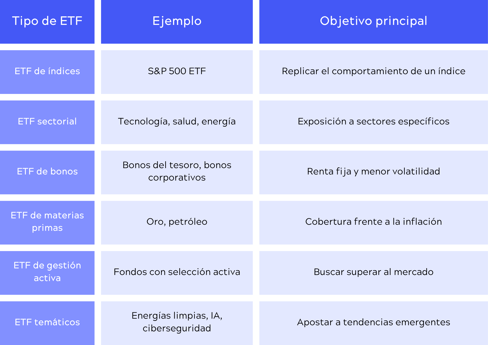 Tipos de ETFs más comunes